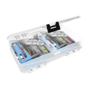 - Two sets of clips per compartment to secure bags of soft plastics in place
