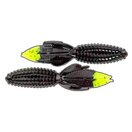 The body of the Sweet Beaver features forward facing ribs that create lots of pressure waves that let bass know something is moving and offers bass a texture that they seem to like when they inhale the lure. The centerline is recessed for better hook penetration but the 'nose' of the lure is thick to hold your hook without tearing on every fish. The long, flat, beaver tail is textured on the flat surfaces and along the edge, and it's splittable so you can have a twin tail look, an attention to detail not seen in most soft plastic lures. The Sweet Beaver also has additional tails set at 90 degrees to the beaver tail for fish attracting movement no matter which way the lure is moved.